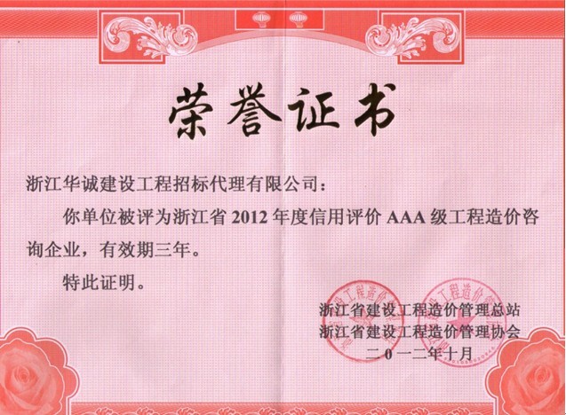 造價(jià)咨詢企業(yè)信用AAA級