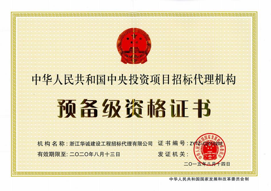 中央投資項目招標代理機構資格證書